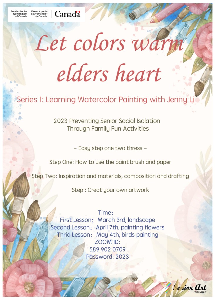 Senior Art with experienced teachers teach different courses every week, such as sketching, water color, Chinese calligraphy and painting, handicraft making courses, cooking, singing, yoga and gardening. Also multicultural classes are taught by a team of volunteering young people in both Chinese and English.